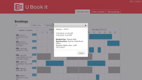 Managing vehicle bookings to ensure that pool vehicles aren’t sitting idle due to late cancellations or no shows is a time consuming, expensive process. U Book-It makes it easy by removing the manual setup required by other vehicle booking systems and providing real-time visibility of your pool vehicles.