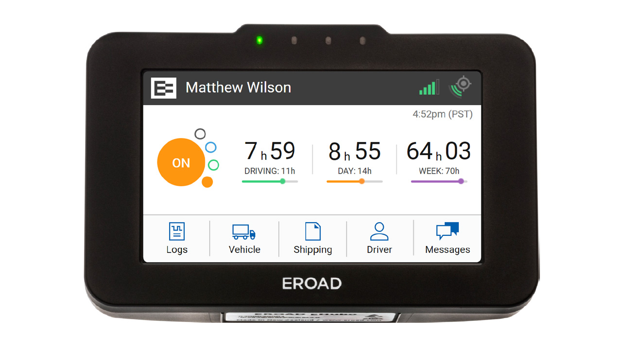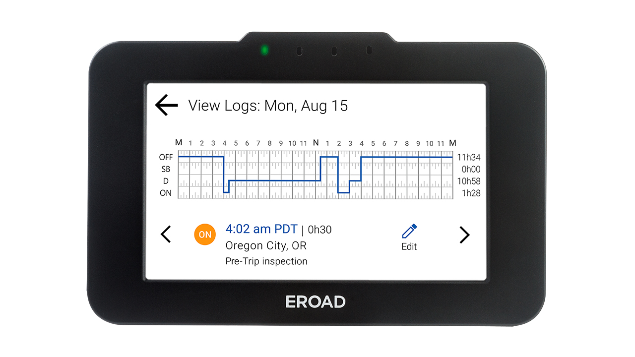 Designed from the ground up with the driver in mind, our highly intuitive ELD (electronic logging device) synchronizes with the engine to automatically record hours of service (HOS). The simple touchscreen lets drivers view, edit and add notes to their logs, and easily present their record of duty status during roadside inspection. Since it stays in the vehicle, there’s nothing to forget.