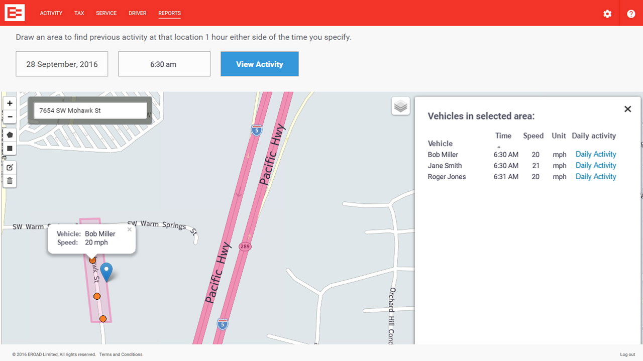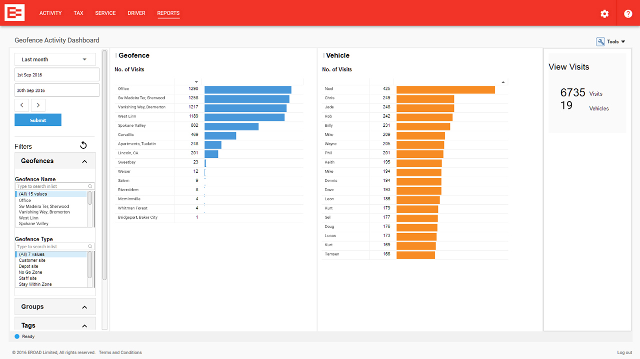 EROAD Stop Watch Geofence takes fleet safety and customer service to a new level, by allowing you to monitor time-on-site targets through setting time limits for geofences. This could be your yard, a customer site or any location where you have vehicles and staff. If one of your vehicles enters the area you have geofenced and fails to exit within the time limit you have set, an automated email notification is triggered.