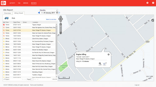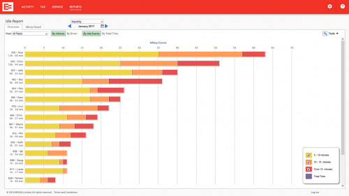 • Details of idle events including location, date, time and idle duration